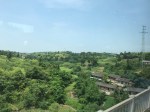 The train traverses the Sichuan Basin, the middle of Sichuan Province between Chongqing and Chengdu. From start to finish we’re crossing rolling hills about 20 to 50 metres high, littered with small valleys and dotted with rustic Chinese farmhouses. Some of these are clustered into small villages, but many of the houses are relatively isolated, surrounded by their cropland. There is no monoculture: all plots are small, averaging about 30 – 50 sq. mtrs. They form a patchwork of different plants at different stages of growth. There’s quite a lot of corn, but most of the rest seems to be a variety of vegetables. There’s a lot of water; dams or small rivers are almost never out of sight somewhere close by. The land looks rich and almost every piece of easily arable land is producing something. Where the land isn’t cropped it is covered by trees so that the overall impression is green, almost lush. It’s a very pleasant landscape which makes the smooth, air-conditioned comfort of the ride even more relaxing.